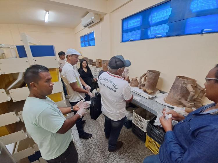 Visitantes puderam conhecer o acervo arqueológico e a reserva técnica do Cepap, onde estão exemplares das urnas Maracá, oriundas do território onde está a escola.