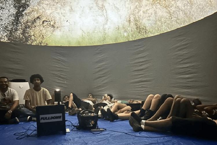 A analista de planejamento, Leila Sacramento, visitando o espaço da exposiçãoFoto: Gabriel Maciel/Sesa