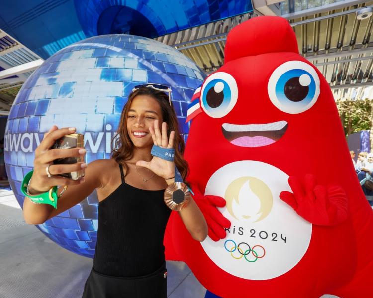 Após sua performance vencedora nos Jogos Olímpicos de Paris 2024, a atleta do Team Samsung Galaxy, Rayssa Leal (skate street do Brasil) surpreendeu os fãs ao comparecer no Olympic™ rendezvous @ Samsung | Square Marigny. Fãs se reuniram enquanto a atleta explorava o espaço, posava para fotos e deixava sua marca com um skate e um capacete autografados, agora em exposição no espaço durante Paris 2024.