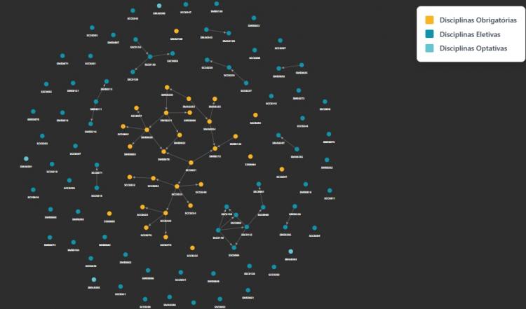 O sistema é bastante intuitivo. Ao acessá-lo, o estudante escolhe a unidade da USP e o curso em que está matriculado. Em seguida, é gerado um mapa visual que mostra todas as disciplinas e suas conexões. As setas indicam as dependências e as cores diferenciam se as matérias são obrigatórias, eletivas ou optativas.