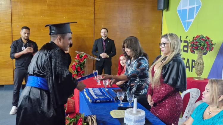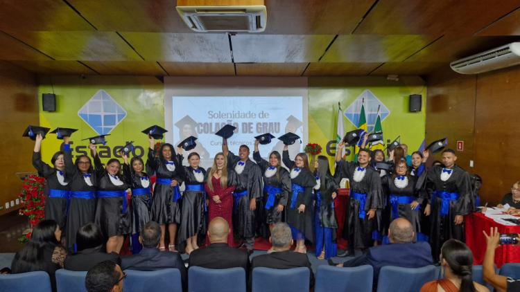 Com emoção e sentimento de conquista, cerca de 120 alunos dos cursos técnicos em Serviços Jurídicos e Comércio celebraram, nesta sexta-feira, 7, a formatura do Centro de Educação Profissional do Amapá Professora Josinete de Oliveira Barros (Cepajob). A cerimônia, realizada pelo Governo do Amapá no auditório da Faculdade Estácio Seama, em Macapá, marca uma importante etapa da educação profissional e tecnológica oferecida pelo Estado.
