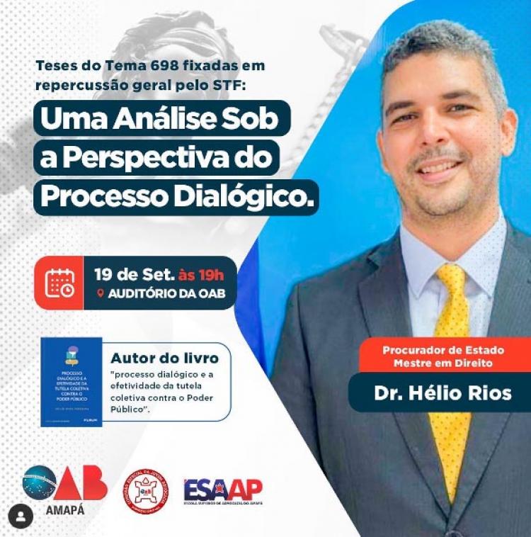 A Ordem dos Advogados do Brasil (OAB) do Amapá, por meio de sua Escola de Advocacia, faz convite em suas redes sociais todos os interessados para participar de um curso especial ministrado pelo Procurador de Estado, Dr. Hélio Rios.