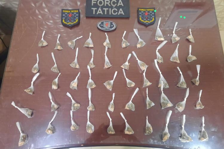 Durante as buscas, foram encontradas drogas, apetrechos e os suspeitos confessaram a autoria e admitiriam integrar organização criminosa, sendo presos em flagrante.