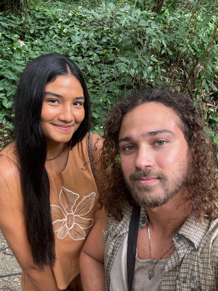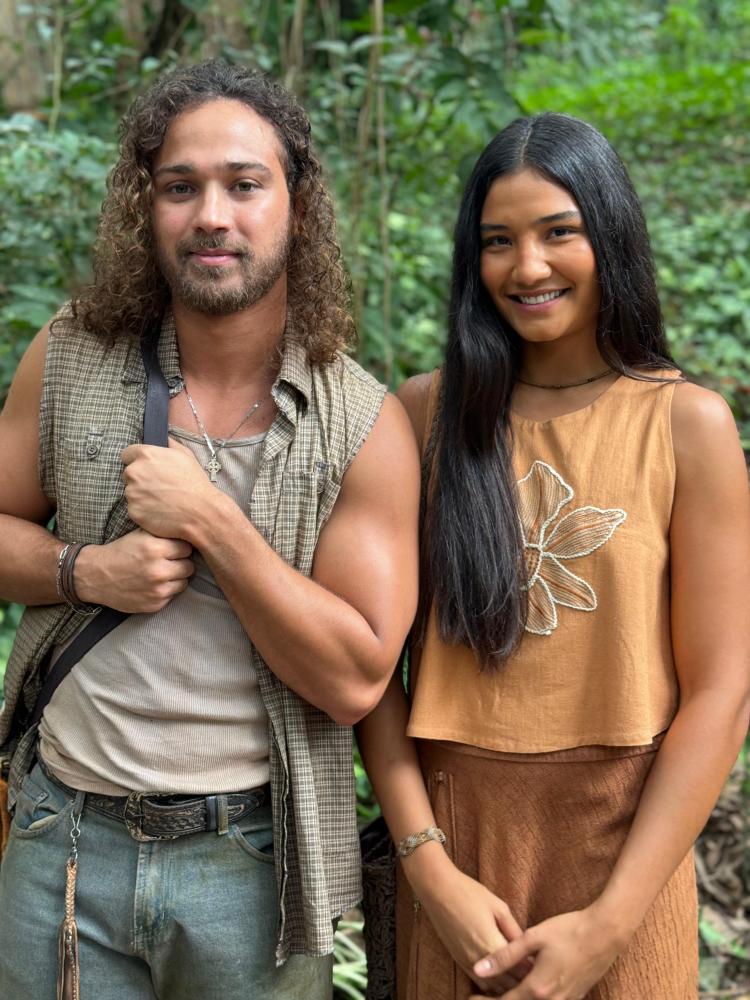 Novo par romântico de novela, Dandara Queiroz e André Luiz Frambach posam juntos nos bastidores