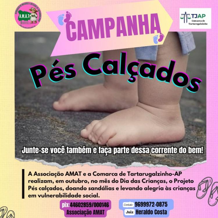 Tartarugalzinho, AP – Uma inspiradora iniciativa de solidariedade está transformando o Mês das Crianças em Tartarugalzinho, no Amapá. A campanha "Pés Calçados" une a Comarca de Tartarugalzinho, representada pelo Juiz Heraldo Costa, e a Associação de Mulheres e Artesãos (AMAT), presidida por Katiane Marques, para garantir um par de sandálias novas a crianças em situação de vulnerabilidade social.