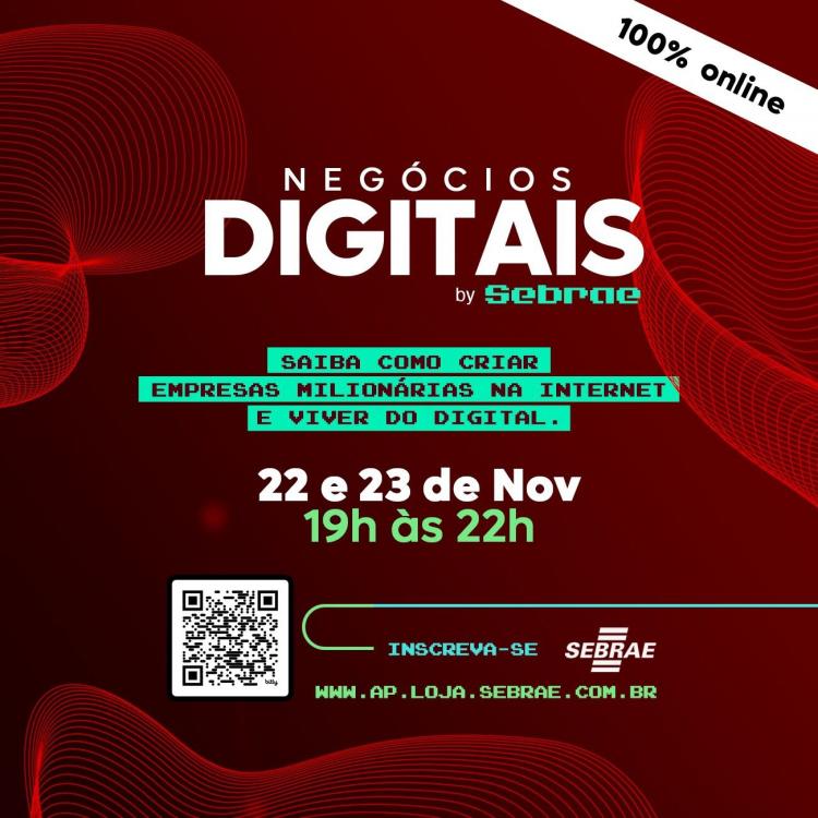 O Serviço de Apoio às Micro e Pequenas Empresas no Amapá (Sebrae), promove evento online ‘Negócios Digitais’ com especialistas nacionais. A ação tem como objetivo abordar a construção da influência digital, criação de mensagens persuasivas para as vendas e estratégias eficazes para ter sucesso com anúncios pagos. O evento acontece nesta quarta (22) e quinta (23), as inscrições são gratuitas e limitadas, e devem ser realizadas exclusivamente na Loja do Sebrae no Amapá.