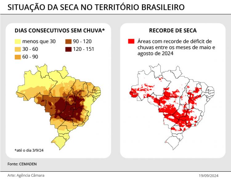 Neste ano, o Congresso Nacional já aprovou a Lei de Qualidade do Ar, em vigor desde maio, e a Lei de Manejo Integrado do Fogo, em agosto. Atualmente analisa a medida provisória (MP 1258/24) com crédito extra de R$ 514 milhões para combate a incêndios na Amazônia. O bioma concentra 50% dos focos de queimadas deste ano, seguido de Cerrado (32%), Pantanal (10%) e Mata Atlântica (8%). Os deputados Weliton Prado (Solidariedade-MG) e Célia Xakriabá (Psol-MG) acabam de apresentar propostas (PL 3485/24 e PL 3621/24) de valorização e regulamentação das atividades de brigadista florestal. Coordenador da Frente Parlamentar da Saúde, o deputado Dr. Zacharias Calil (União-GO) também cobra providências do governo quanto à saúde da população.