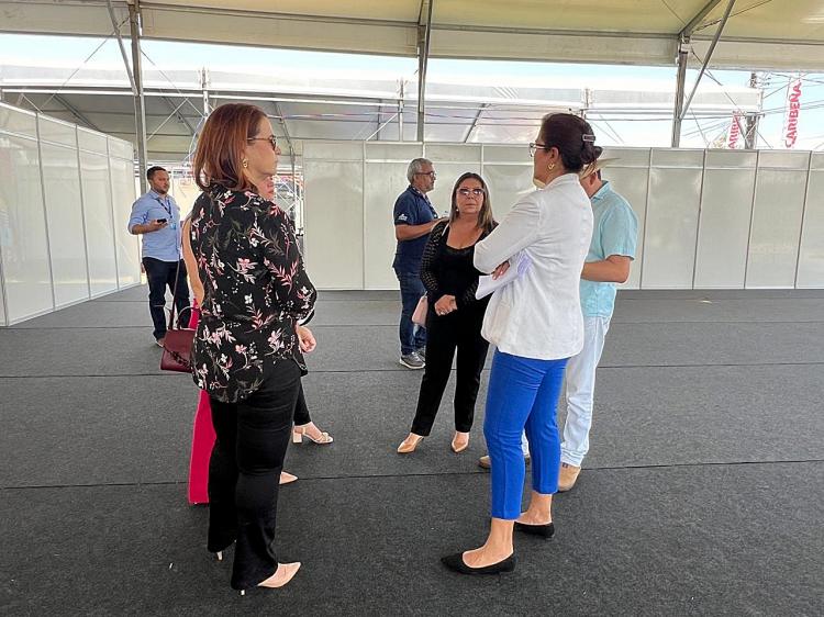 A superintendente do Sebrae, Alcilene Cavalcante; a diretora técnica do Sebrae, Suelem Amoras, e colaboradores da instituição, realizaram visita técnica, na manhã desta quarta (28), para análise dos últimos detalhes da Arena do Serviço de Apoio às Micro e Pequenas Empresas no Amapá (Sebrae), que apresentará tecnologia e inovação para refletir a essência da marca, na 53° Expofeira, que inicia nesta quinta (29). O estande atenderá ao público no período de 29 de agosto a 8 de setembro, das 17h às 23h.