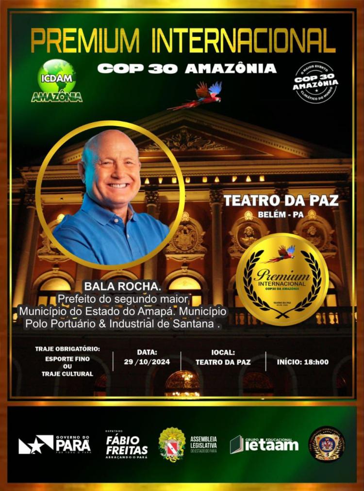 Prefeito de Santana, Sebastião Bala Rocha, recebe Prêmio Internacional COP 30 Amazônia no Pará