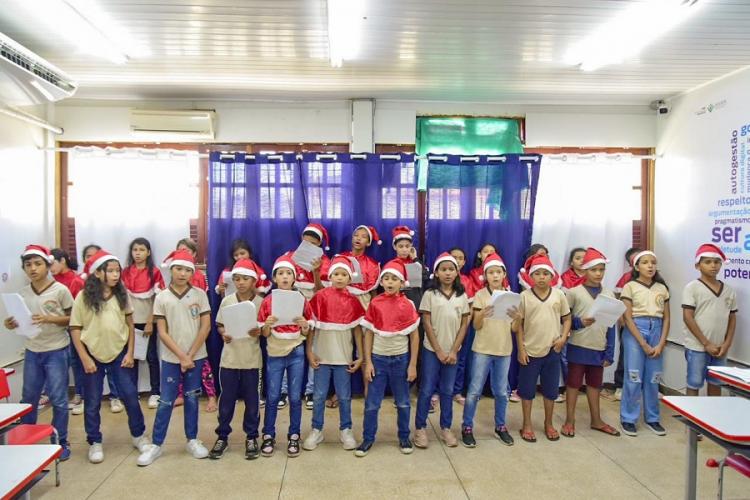 Clássicos natalinos, como 'Noite Feliz', 'Natal de Amor' e 'Vem Chegando o Natal', já ecoam pelos corredores da Escola Estadual Reinaldo Damasceno, no bairro Novo Buritizal. Mais de 30 estudantes desta unidade participarão do coral natalino. O estudante José Dinair, de 10 anos, expressa sua animação, afirmando que o Natal é sua época favorita do ano, e participar da cantata é um sonho realizado.