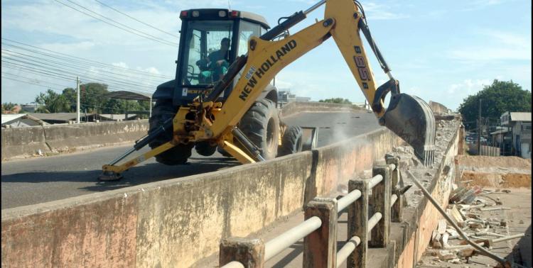 Com o aporte financeiro articulado pelo senador Davi Alcolumbre, coordenador da Bancada Federal, em conjunto com o deputado federal Vinícius Gurgel, foi possível o início da revitalização da Ponte Sérgio Arruda, que conecta o Centro à Zona Norte de Macapá, no Amapá. Após anos de problemas estruturais desde 2014, a ponte começou a ser demolida na última sexta-feira (24), para uma nova ponte, moderna, se erguer para melhorar o fluxo urbano do local.