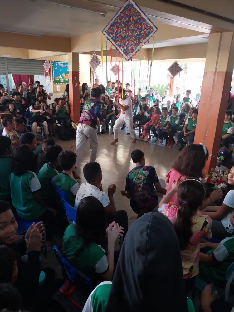 Para abrilhantar o encerramento das atividades, a programação final do projeto contou com a participação dos alunos dos dois turnos da escola, que puderam participar de atividades como apresentações musicais, capoeira, jogos afro-indígenas, além das premiações dos concursos de Desenho com os alunos do Fundamental 1 e de Poesia com alunos do Fundamental 2 e Ensino Médio.