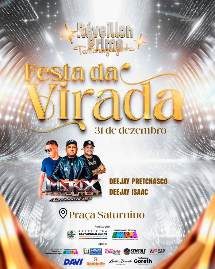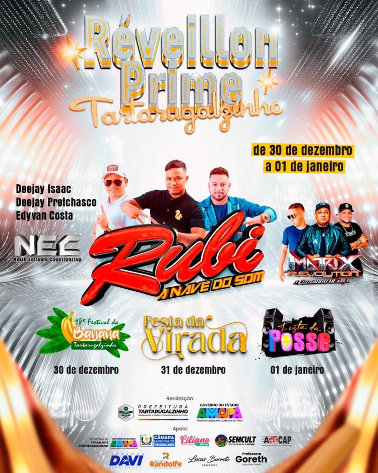 O Réveillon Prime de Tartarugalzinho traz três dias de festa, de 30 de dezembro a 1º de janeiro, celebrando o 18º Festival da Banana, a ‘Festa da Virada’ e a ‘Festa da Posse’. O evento reúne atrações para todos os gostos, com destaque para o North Extreme Cagefighting (NEC) e o Matrix Revolution.