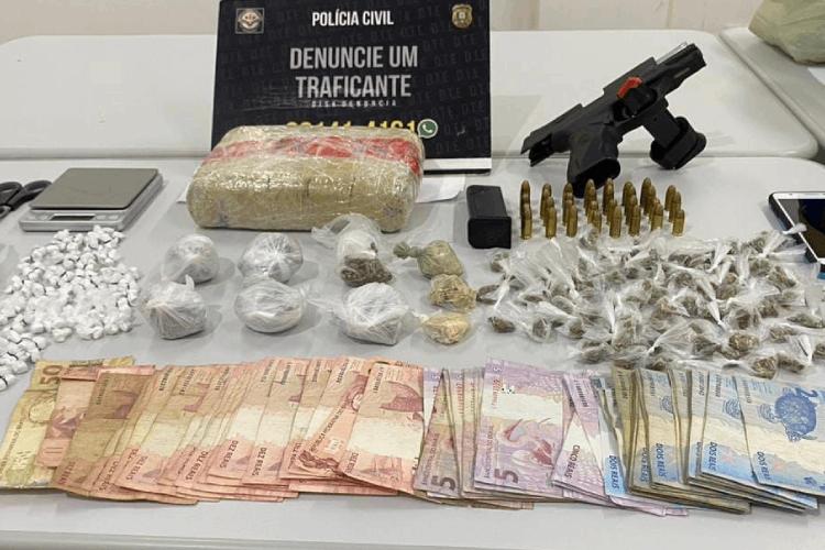 O Delegado informou ainda que os suspeitos, de 17 e 19 anos de idade, estavam com duas armas de fogo, rádio comunicador, drogas e balança de precisão.