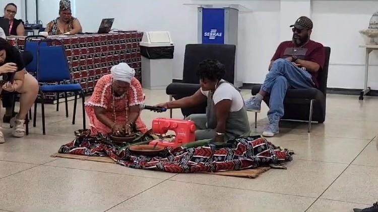 Com uma programação cuidadosamente planejada, inspirada nas tradições ancestrais africanas, o evento contou com mais de 150 pessoas, entre modelos e profissionais, trabalhando nos bastidores para criar um espetáculo memorável. O uso simbólico das folhas, durante dinâmicas de interação, ressaltou a importância dos cuidados e do respeito ao sagrado africano, reforçando a conexão espiritual e cultural que permeia cada aspecto do desfile. Esse ritual, profundamente enraizado na herança africana, simboliza purificação e proteção, conectando os participantes às suas raízes ancestrais e promovendo um espaço de fortalecimento coletivo.
