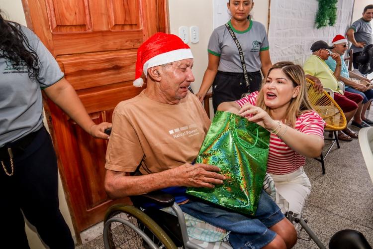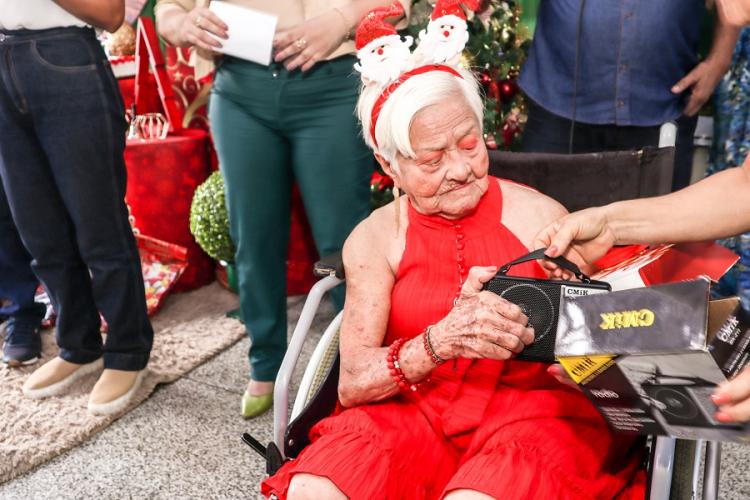 A idosa Lurdinha Ferreira, de 101 anos, foi a primeira a receber o presente que ela aguardava ansiosamente, desde o dia em que fez o pedido. "Oba, muito obrigada, muito obrigada, eu ganhei um rádio, olhem, eu ganhei meu rádio!", celebrou Lurdinha. Atualmente, vivem no abrigo 88 idosos, com idades que variam de 60 a 101. A secretária de Estado da Assistência Social, Aline Gurgel, participou da cerimônia e destacou que o cuidado oferecido pela casa aos acolhidos reflete a política da gestão atual, que busca garantir mais qualidade de vida para esse público.