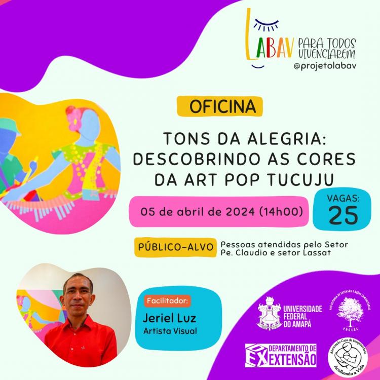 Sob a orientação do talentoso Artista Visual, Jeriel Luz, os participantes serão guiados em uma jornada de expressão artística, mergulhando nas cores e formas que compõem a rica cultura visual do Amapá. Será um momento de aprendizado, descoberta e, acima de tudo, de celebração da criatividade e da inclusão.