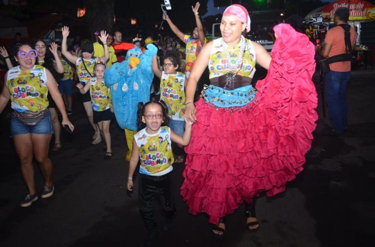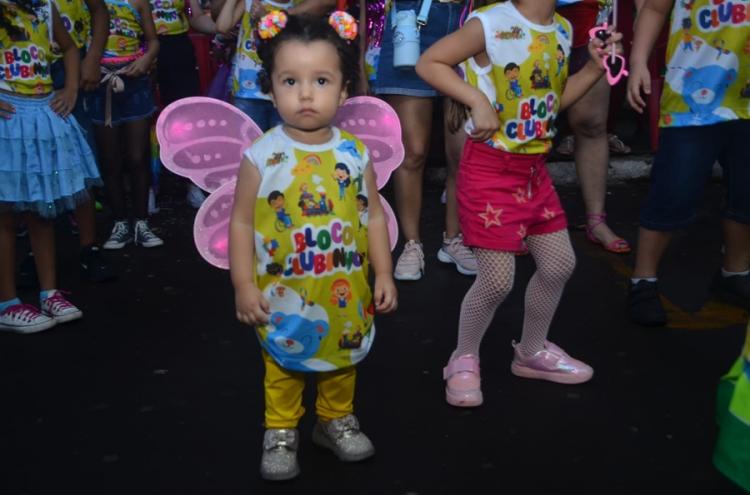 Na segunda noite de desfiles, a abertura ficou por conta do bloco infantil ‘Clubinho’. Com muita animação, os pequenos de todas as idades viraram super-heróis, personagens de desenhos e filmes, fadas e bailarinas. A diversão da folia foi regada a confetes, serpentinas, espuma, brincadeiras, coloridos, pinturas nos rostos e adereços. Há três anos, Maiara Sussuarana, desfila no Clubinho com a filha, Inaiá, de 9 anos.