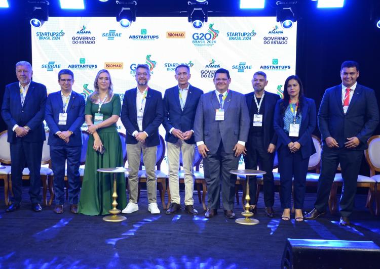 O presidente do Conselho Deliberativo do Sebrae no Amapá, Josiel Alcolumbre; a superintendente, Alcilene Cavalcante; a diretora técnica, Suelem Amoras; e o diretor de administração e finanças, Marcell Harb, junto ao governador do Estado, Clécio Luiz Vieira; e a presidente da Associação Brasileira de Startups (ABStartup), Ingrid Barth, receberam na abertura oficial do encontro internacional Startup20, empreendedores nacionais e estrangeiros; agentes públicos e políticos. O Amapá é o único estado da Amazônia a receber a reunião do G20 sobre inovação e tecnologia. O Startup20, acontece na sede do Sebrae, no período de 23 a 26 de fevereiro, das 8h às 18h.