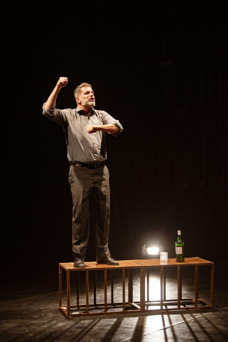 No primeiro solo, “O homem de uniforme escolar”, o público assiste a uma aula de bullying homofóbico: o que é, como praticar e quais as suas consequências físicas e emocionais? São histórias reais de crianças e jovens que sofreram com o preconceito e a intolerância na escola. Na sequência, “O homem com a pedra na mão” parte do depoimento ficcional de um dos participantes da Revolta de Stonewall, ocorrida em junho de 1969 em Nova York, um marco fundamental da luta pelos direitos da comunidade LGBTI+. Uma descrição minuciosa da noite em que os frequentadores (gays, lésbicas, travestis, drag queens) do bar Stonewall Inn reagiram, pela primeira vez, a mais uma batida policial no local. O último solo, “O homem no Congresso Nacional”, foi construído a partir de falas e pronunciamentos do ex-deputado federal Jean Wyllys, proferidos entre janeiro de 2011 e dezembro de 2018. Para criar o texto, Leonardo assistiu e transcreveu discursos, falas, entrevistas e declarações do parlamentar e, cuidadosamente, criou o depoimento de um deputado gay e ativista na tribuna da Câmara.