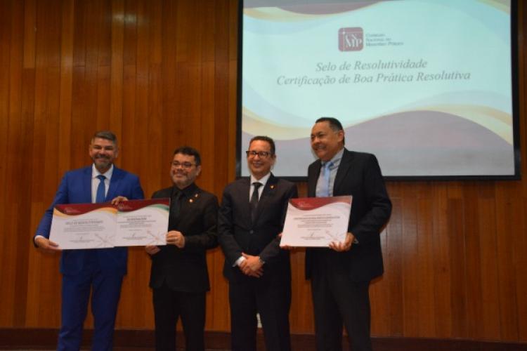 Durante a cerimônia, o Procurador-Geral do MP-AP, Paulo Celso Ramos, foi homenageado pela valorosa contribuição ao fomento da resolutividade e defesa da unidade ministerial. Também recebeu certificado, a Procuradora de Justiça Ivana Cei. Eles receberam das mãos do corregedor nacional, conselheiro Oswaldo D’Albuquerque Lima Neto, as condecorações.