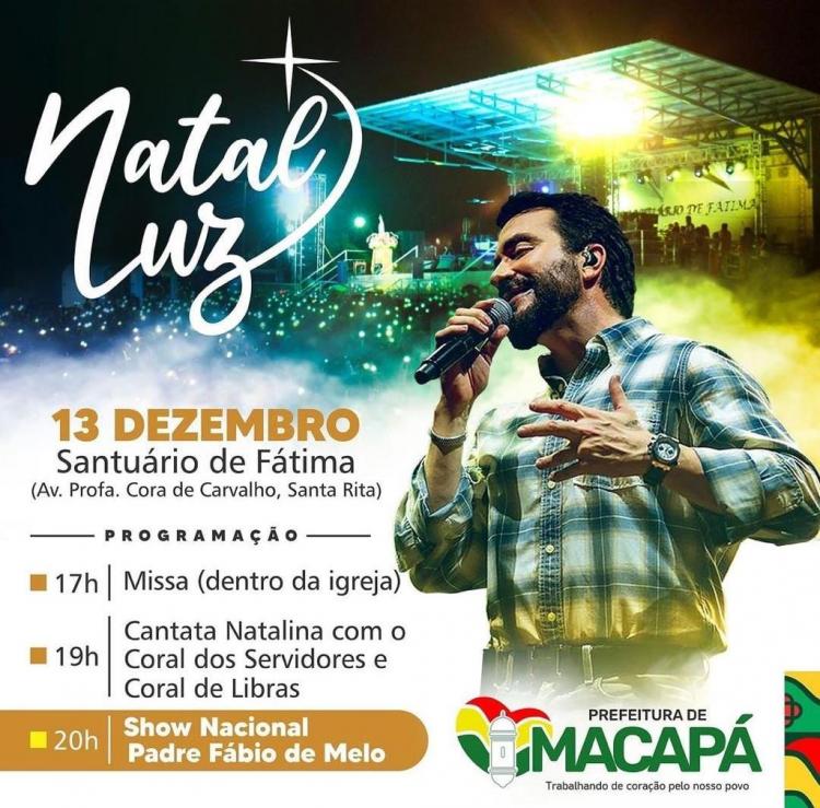 Noite especial de fé e música no "Natal Luz", evento marcado para o dia 13 de dezembro, contará com um show nacional do Padre Fábio de Melo e a apresentação da Cantata Natalina, composta por 40 servidores públicos municipais. É aberto ao público e gratuito.