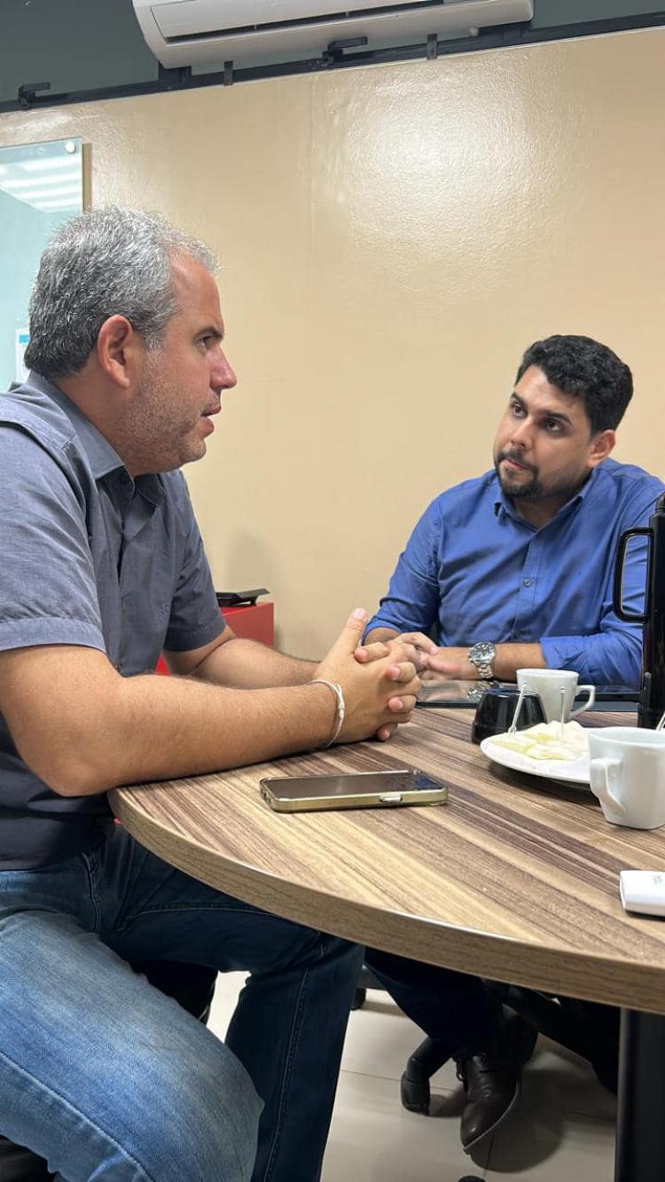No mesmo dia, encerrando a tarde, Bruno Mineiro se reuniu com o secretário de Planejamento do Amapá, Lucas Abraão, para discutir convênios e parcerias entre a Prefeitura e o Governo do Estado. Entre os temas abordados, destaca-se a viabilização de convênios para fornecimento de combustível, essenciais para a manutenção de ramais e a limpeza urbana. O prefeito salientou a importância dessas parcerias para alinhar as ações entre Prefeitura e GEA buscando o desenvolvimento e bem-estar da comunidade.