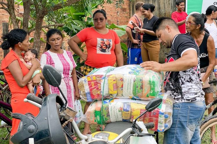 “A gente trabalha no período com mandioca, mas com a chuva, ela fica muito aguada. Com a ajuda da cesta, a gente já não gasta na parte do alimento, e pelo fato de ser uma cesta grande, uma cesta abençoada, vai assegurar a nossa alimentação por um bom tempo”, relata emocionado.