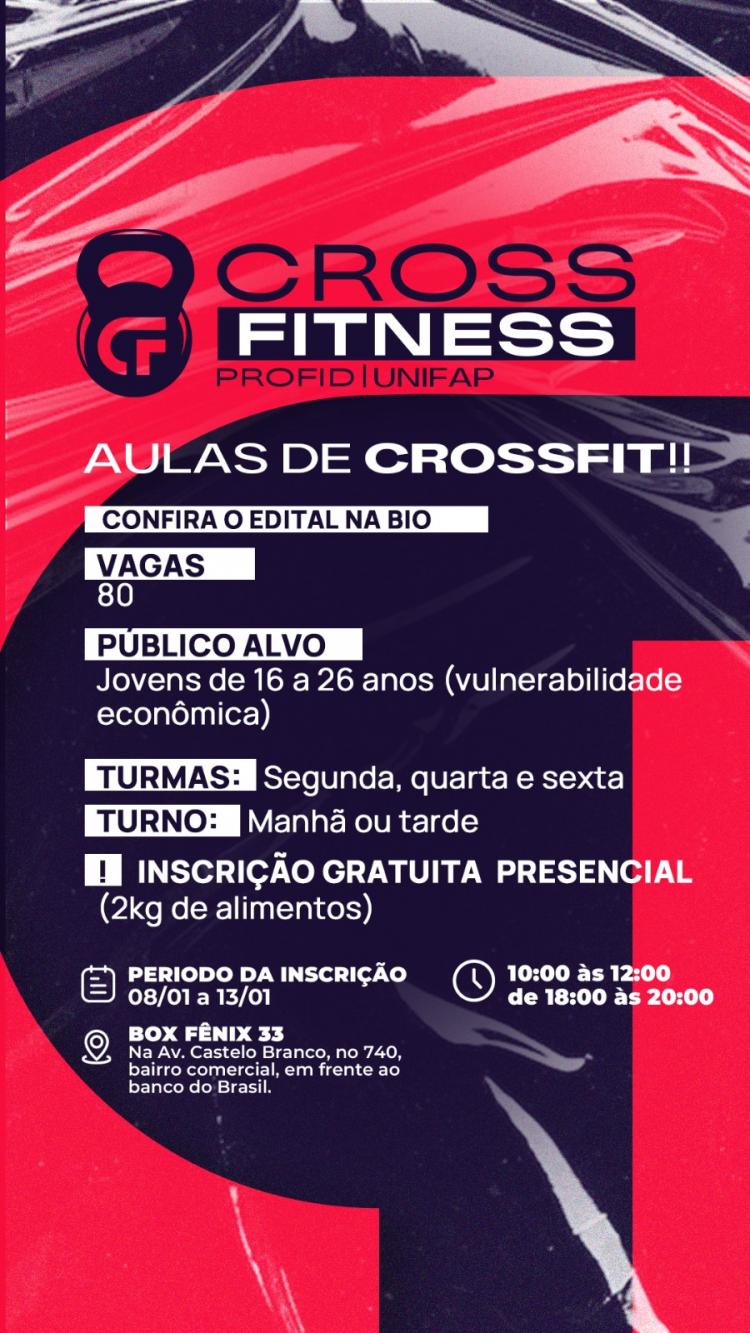 O “Cross Fitness” faz parte do Programa de Formação, Capacitação, Aperfeiçoamento, Qualificação Profissional e Idiomas (Profid), programa de extensão e pesquisa que objetiva o diálogo permanente da Unifap com a sociedade, na compreensão de seu papel à formação de uma universidade mais inclusiva e engajada, mediante a democratização de conhecimentos, artes, cultura e das ciências produzidas nesta Instituição de Ensino Superior.
