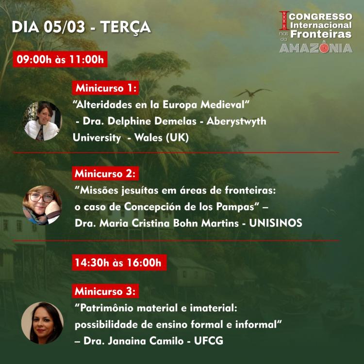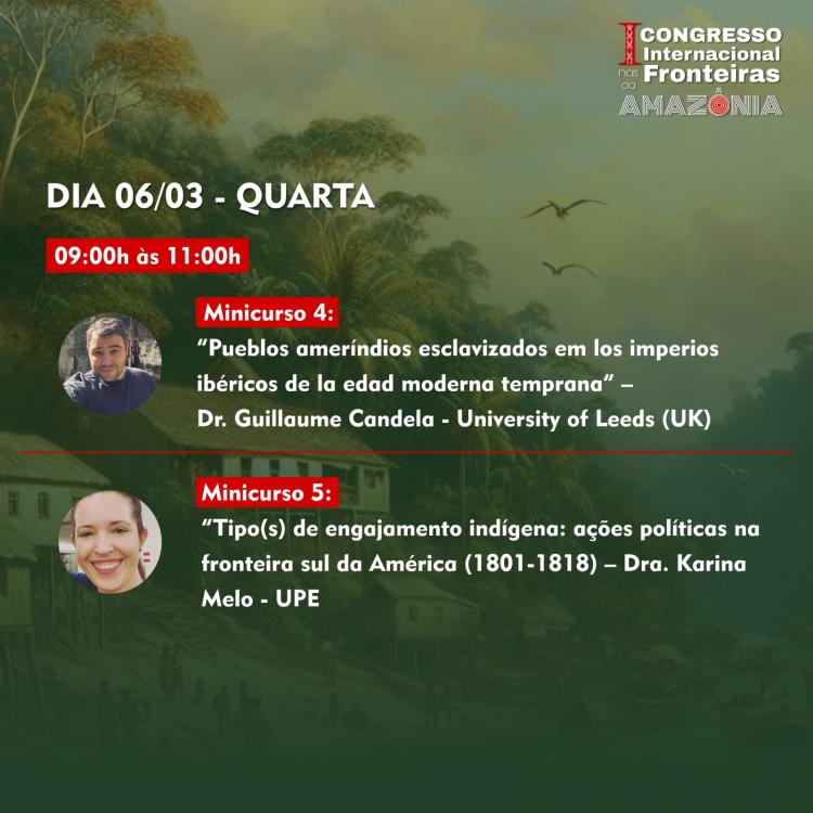 Os minicursos vão abordar temáticas como: “O espaço e agência indígena colonial na cartografia”, “Amazonas, fronteiras e viagens pela costa setentrional do Grão Pará” e “Alteridades en la Europa Medieval”.