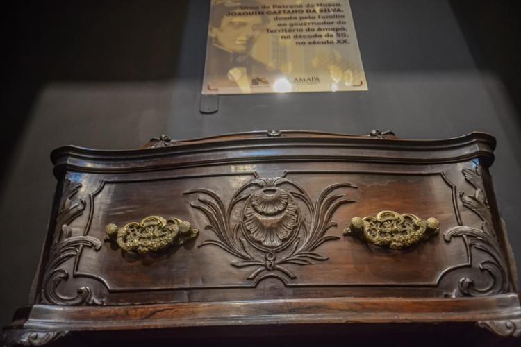 Entre as curiosidades está ainda a urna com os restos mortais do patrono do museu, Joaquim Caetano da Silva, doado pela família do governador do ex-Território na década de 50.