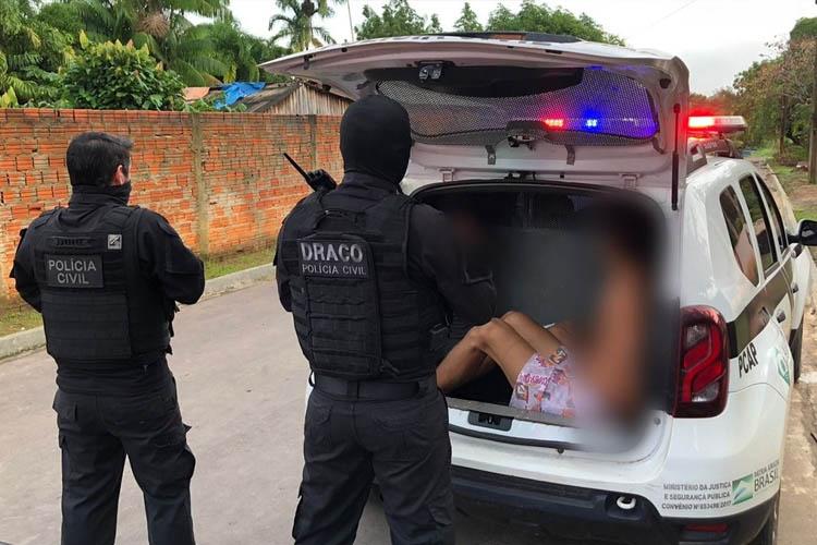 Durante a ação policial, um adolescente de 17 anos de idade, integrante de organização criminosa, foi apreendido em flagrante com uma arma de fogo e drogas.