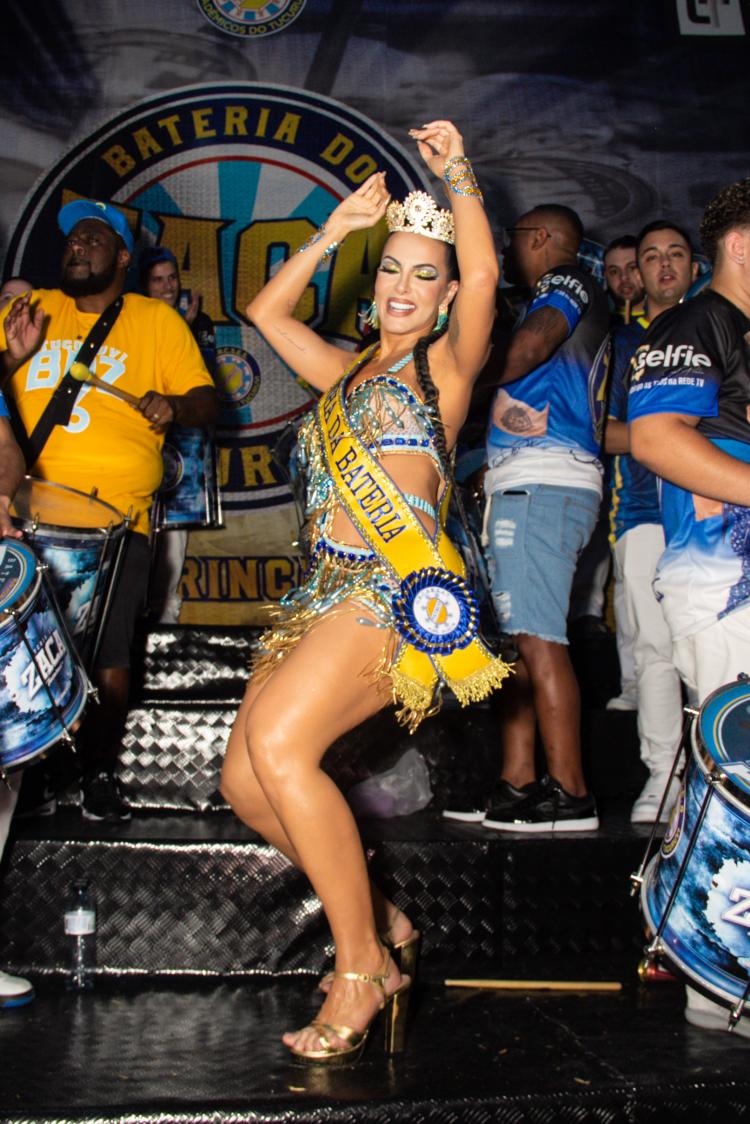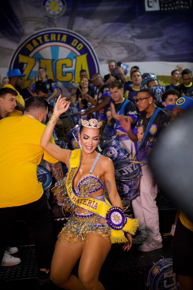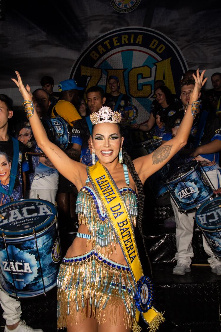Carla, que foi anunciada há pouco mais de um mês como a nova Rainha de Bateria, terá o privilégio de reinar sozinha à frente dos ritmistas da 'Bateria do Zaca', comandada pelo Mestre Serginho.