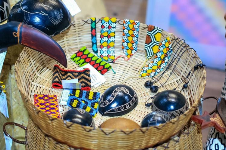 A loja da Associação Uasei reúne trabalhos de 67 aldeias e funciona como vitrine para peças produzidas diretamente nas comunidades indígenas. No Inova Amazônia Summit, os itens mais procurados foram miçangas, cuias, esculturas em madeira e cestos. Segundo Tairine, a maior parte da matéria-prima utilizada nos objetos vem da natureza.