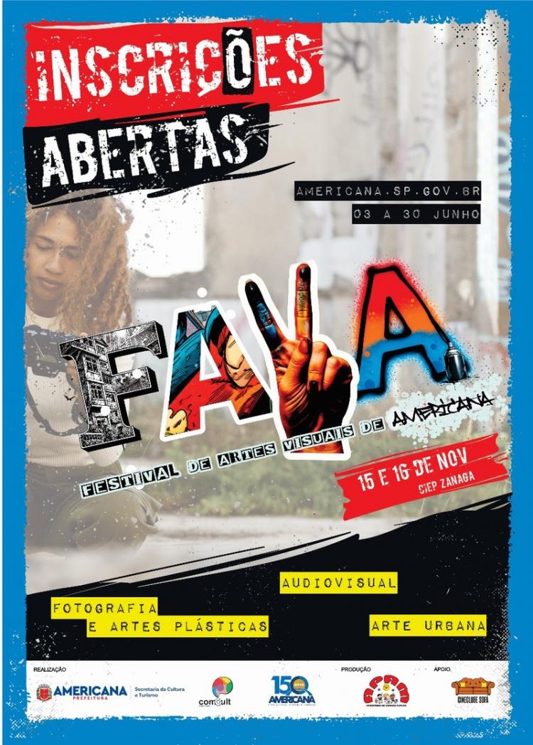 O Festival de Artes Visuais de Americana (FAVA) 2025 está com inscrições abertas, até 30 de junho, para artistas de Americana e de todo Brasil. Realizado pela Prefeitura de Americana, por meio da Secretaria de Cultura e Turismo e do Conselho Municipal de Cultura (Comcult), com produção da APAM (Associação de Promoção e Assistência de Americana), o festival recebe obras que explorem o tema “Um olhar pela cidade”, em celebração aos 150 anos do município.