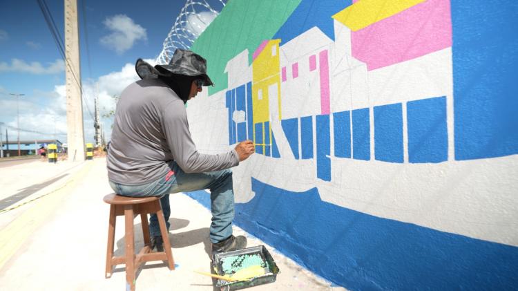 Obra assinada por Jeriel Luz transforma o muro da Subestação Forte Cumaú em uma grande galeria a céu aberto.