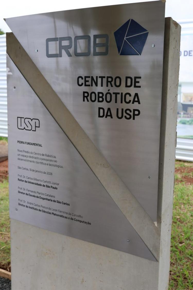 Uma cerimônia, realizada no dia 19 de janeiro, marcou o lançamento da pedra fundamental do prédio do Centro de Robótica (CRob), na Biblioteca da Área 2 do campus de São Carlos. O conceito da nova sede, prevista para ser entregue no início de 2027, baseia-se na criação de áreas especiais para grupos de engenharia e permitirá a ampliação da capacidade científica e tecnológica. O investimento da USP é de aproximadamente R$ 64,7 milhões nessa nova infraestrutura.