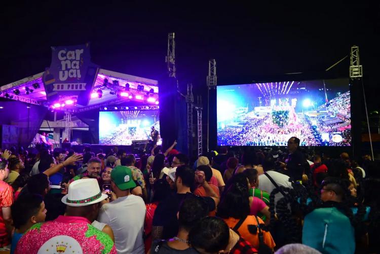No do embalo do Carnaval do Povo, os amapaenses permaneceram na Praça da Bandeira, no Centro de Macapá, até quase o amanhecer desta segunda-feira de Carnaval, 16, para acompanhar, em tempo real, o desfile da Estação Primeira de Mangueira no telão de LED instalado pelo Governo do Amapá. Nem mesmo a chuva fez o público arredar o pé da praça.