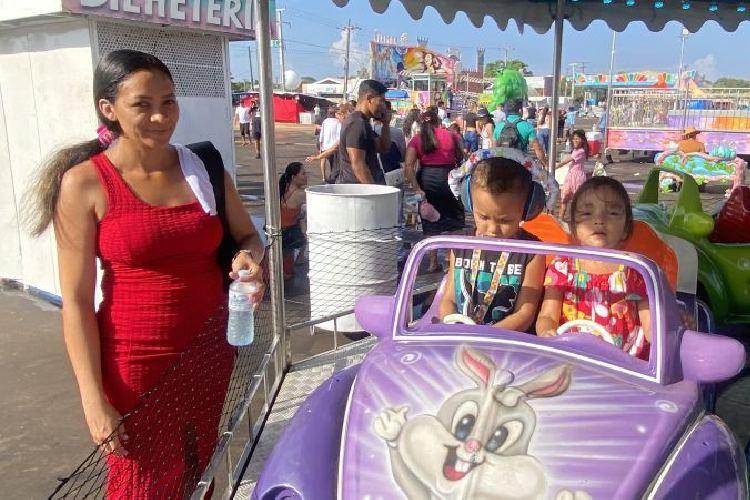 Mãe de três filhos, a autônoma Amanda Magno aproveitou o dia de gratuidade nos brinquedos da 53ª Expofeira do Amapá...