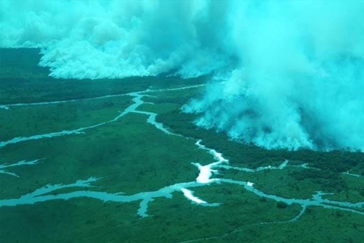 Governo do Amapá integra ação de combate a incêndio que atinge a Reserva do Lago Piratuba