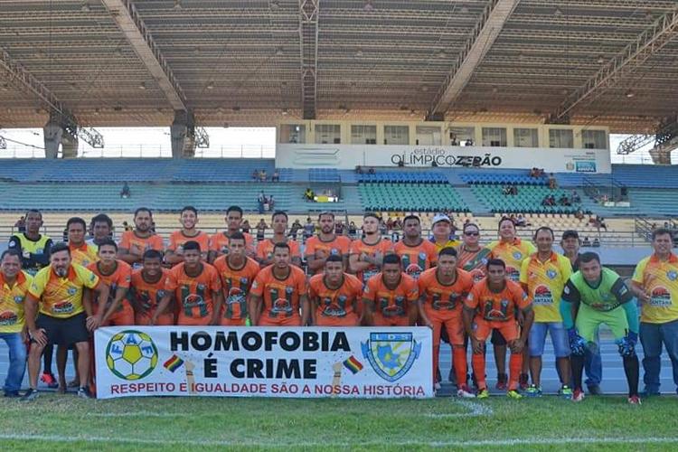 A campanha que levou jogadores a levantarem a bandeira contra o preconceito é uma das formas encontradas pela Federação Amapaense de Futebol para conversão de penas dos clubes em medidas de interesse social.