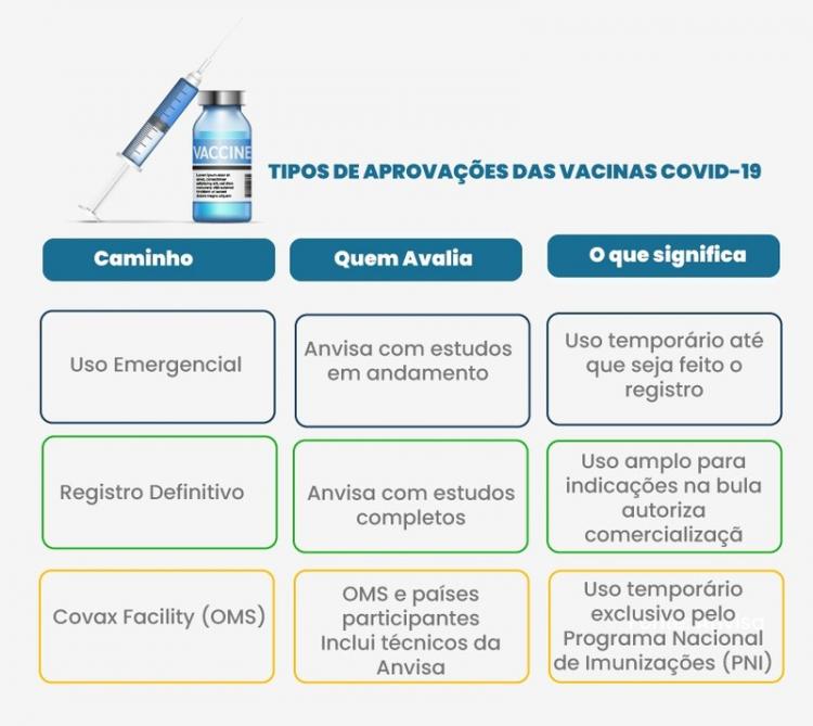 Porém, há a possibilidade de se pedir o uso de autorização emergencial dos imunizantes, situação que ocorreu com as duas vacinas disponíveis atualmente no Brasil – CoronaVac e vacina de Oxford. A autorização emergencial tem um prazo de 10 dias para ser julgada pela Anvisa. O registro definitivo é um processo mais demorado.