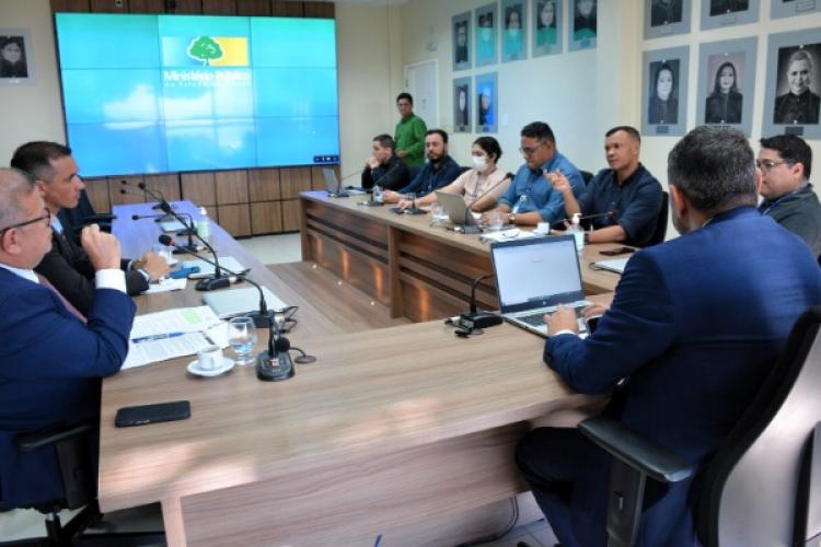 Participaram o procurador-geral do Estado (PGE), Thiago Albuquerque, o diretor do Departamento de Tecnologia da Informação do MP-AP, Rodinei Paixão, o assessor jurídico e a diretora de Benefícios e Fiscalização da Amprev, Narleia Salomão e Mauro Silveira Junior, respectivamente, e técnicos da empresa previdenciária.