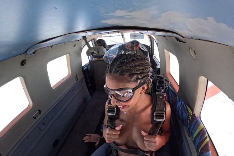 Criadora de conteúdo faz salto de paraquedas nua em São Paulo e tenta registro no Guinness Book