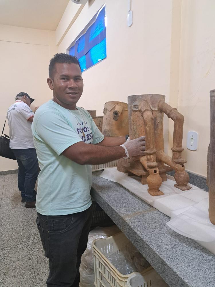 Visitantes puderam conhecer o acervo arqueológico e a reserva técnica do Cepap, onde estão exemplares das urnas Maracá, oriundas do território onde está a escola.
