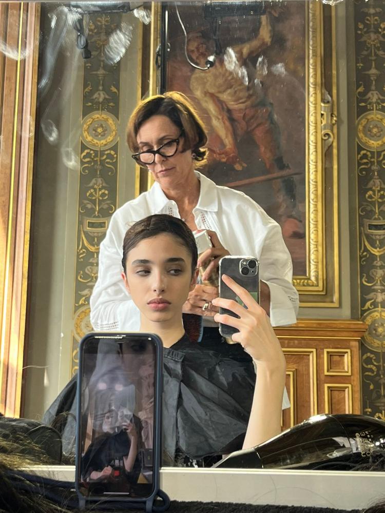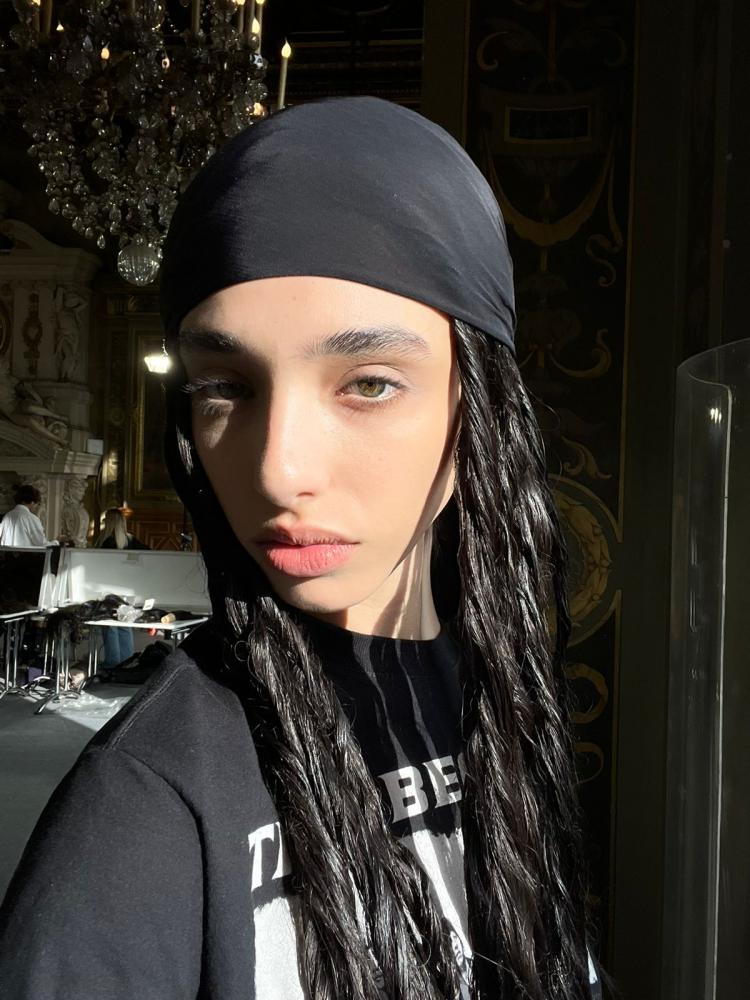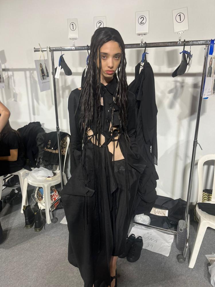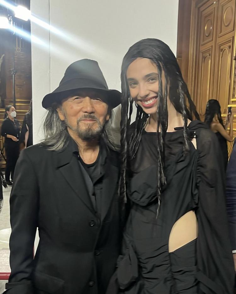 Em Paris, a jovem de 19 anos foi eleita para desfilar para o consagrado estilista Yohji Yamamoto, com quem posou nos bastidores.