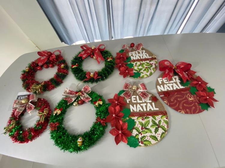 A atividade, que ocorreu em um clima de integração e criatividade, teve como objetivo promover a socialização e fortalecer os vínculos comunitários. Durante a oficina, as participantes aprenderam a confeccionar guirlandas utilizando materiais recicláveis e elementos decorativos típicos do Natal.