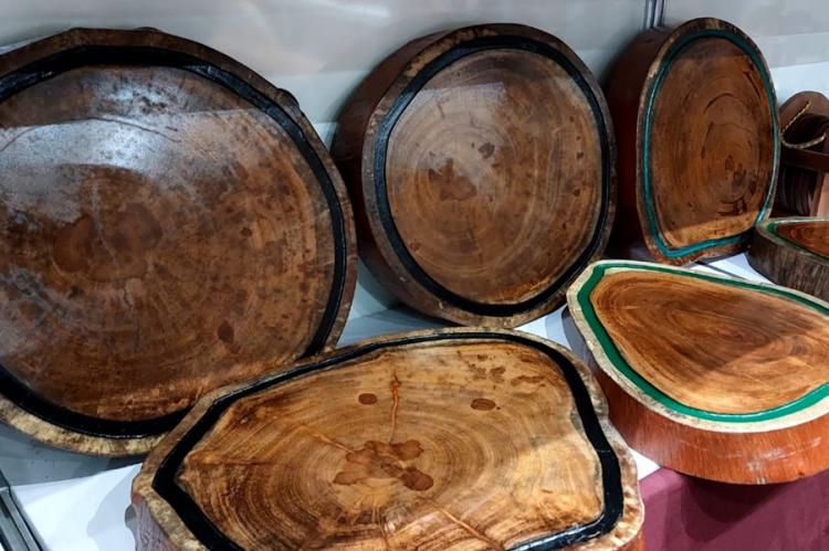 O marceneiro David Campos, de 46 anos, trabalha na área há mais de 30 anos e já participou uma vez da feira. Ele está apresentando mesas de diversos tipos, tábuas de churrasco, porta-xícaras, entre outros materiais.
