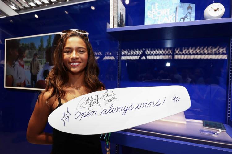 Após sua performance vencedora nos Jogos Olímpicos de Paris 2024, a atleta do Team Samsung Galaxy, Rayssa Leal (skate street do Brasil) surpreendeu os fãs ao comparecer no Olympic™ rendezvous @ Samsung | Square Marigny. Fãs se reuniram enquanto a atleta explorava o espaço, posava para fotos e deixava sua marca com um skate e um capacete autografados, agora em exposição no espaço durante Paris 2024.