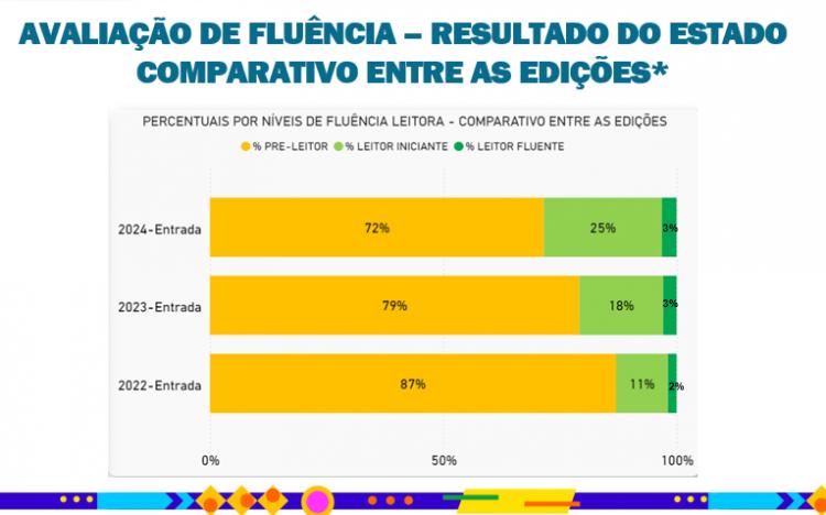 Desde 2019, o estado experimentou um aumento de 17 pontos percentuais, passando de 25% para 42% de alunos alcançando as metas de alfabetização, demonstrando um progresso substancial no ensino básico.